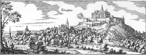 „ Euer Liebden kann ich freundlicher Meinung nicht verhalten, daß Ich die wohlgeborenen, meine freundlichen, wohlgeliebten Töchter Catharinen und Annen an die auch wohlgeborenen Philippsen Grafen zu Eberstein und Ludwigen, Grafen zu Löwenstein, ehelich verlobt und danach willens und fürhabens bin, sie mit Verleihung göttlicher Gnaden auf künftigen Montag, den zweiten Septembris, altem löblichen, wohlhergebrachten christlichem Brauche nach zu Königstein ehelich beizulegen und am folgenden Dienstag ihrer beider hochzeitlichen Ehrentag und Kirchgang zu halten“. Er bittet die Gäste bis zum 2. September abends sich in Königstein einzufinden, um „ den hochzeitlichen Ehrentag seiner Töchter zieren zu helfen und sich auch sonst in Fröhlichkeit dermaßen zu erzeigen“. |